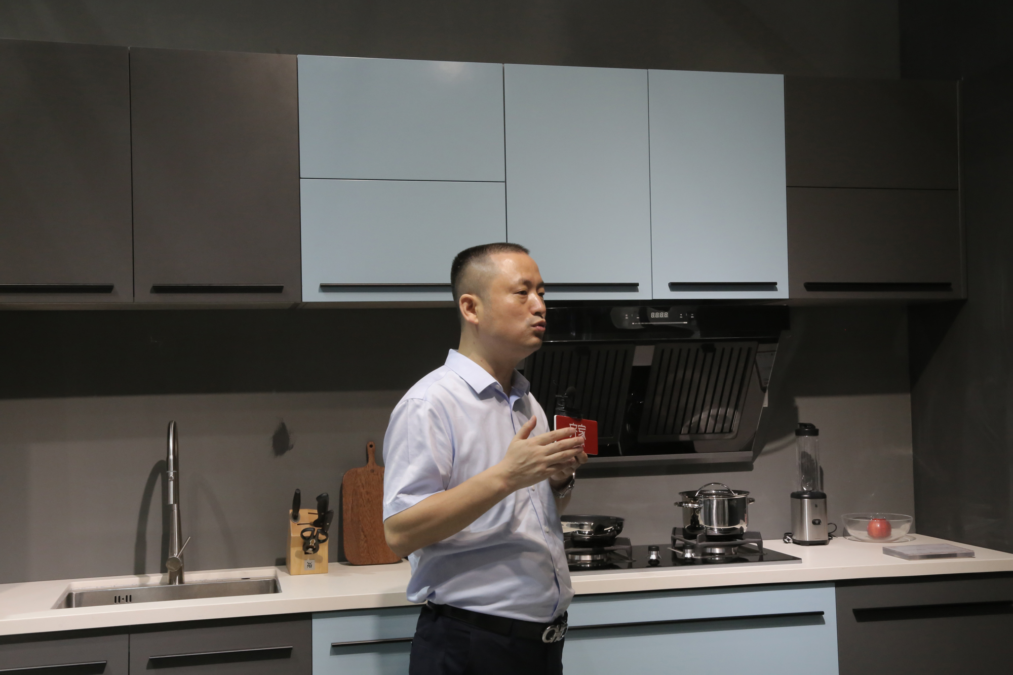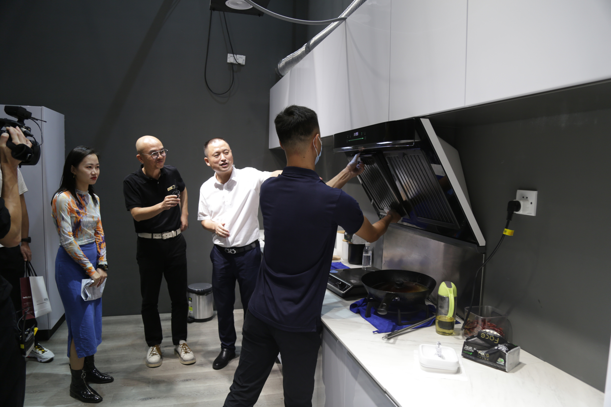 22日下午,深家协精装研究院院长关永康先生联合一兜糖主播,对展会的优秀展商进行了一场“探展”直播活动。直播中,关院长向大家推荐了库灵图的前置油烟分离烟机,以及无需开孔的超薄平板燃气灶,为开放式厨房,提供了有效的解决方案。