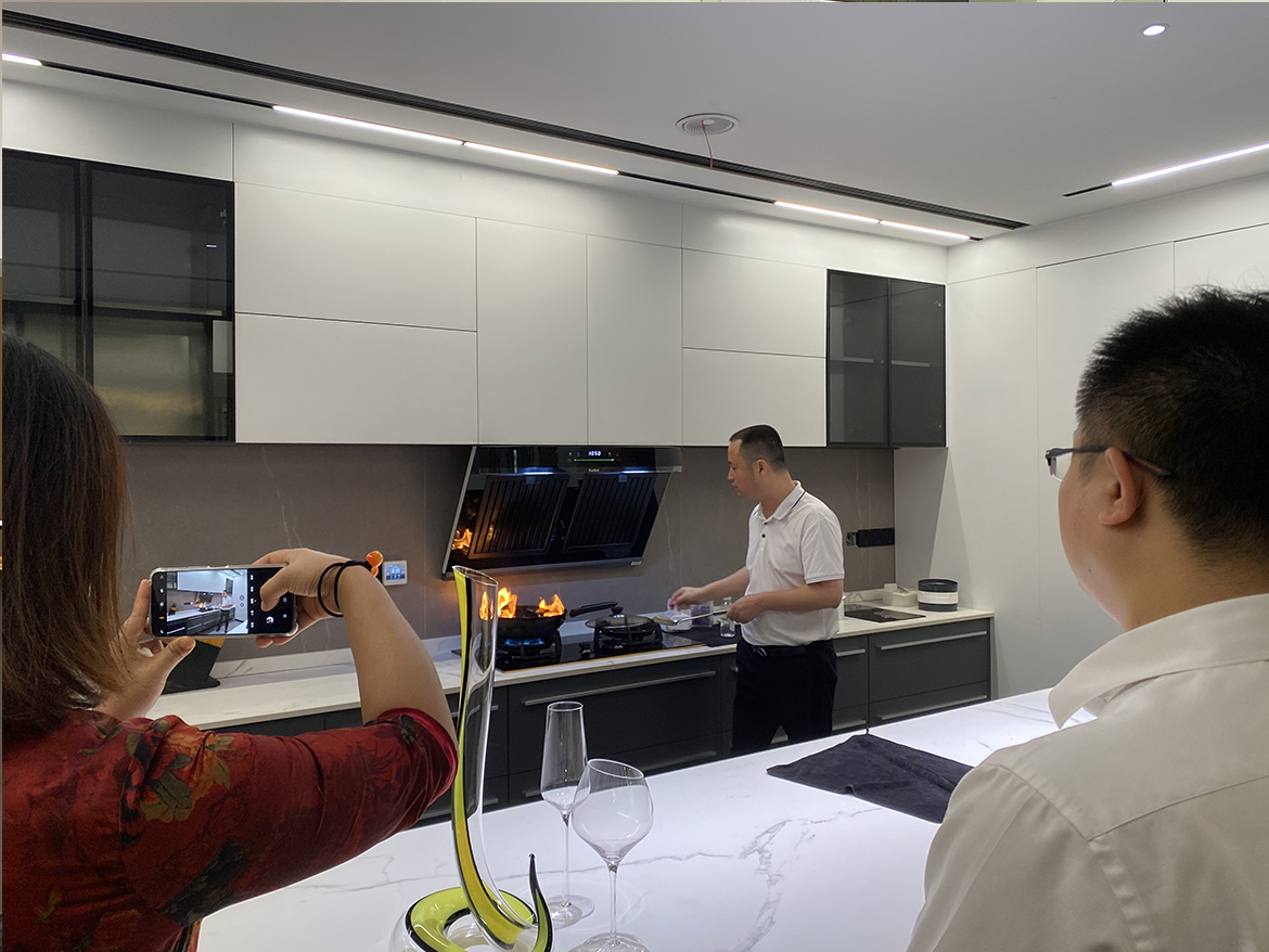 各位学员嘉宾们对各类高品质的产品及德系工艺接连点头称道,特别是在烟机演示过程中,看到经过油烟熏烤、猛火灼烧的烟机,依然能够保持洁净如新的状态时,更是惊讶不已。好的产品是打造高品质厨房生活空间的基础,库灵图希望通过开源化、模块化的设计理念,为更多精英用户创造出理想的浪漫生活。